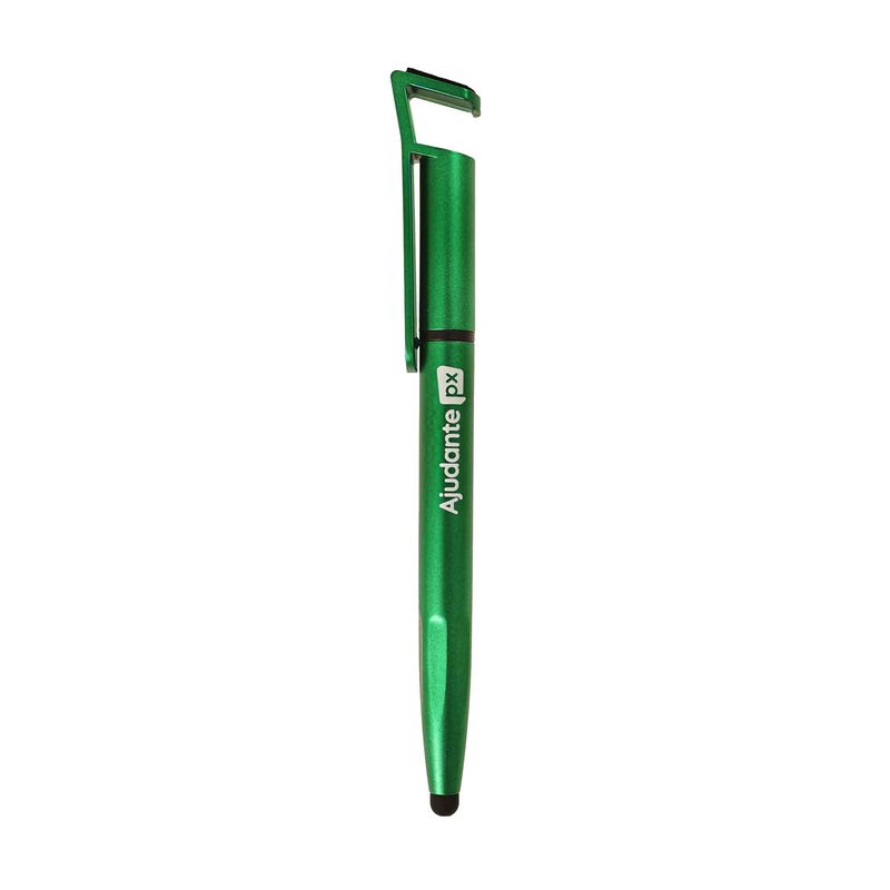 Uma caneta prática e versátil. Feita em plástico de alta qualidade, conta com ponteira touch, suporte para celular e um limpador de telas integrado. Um item funcional que combina utilidade e estilo no seu dia a dia.